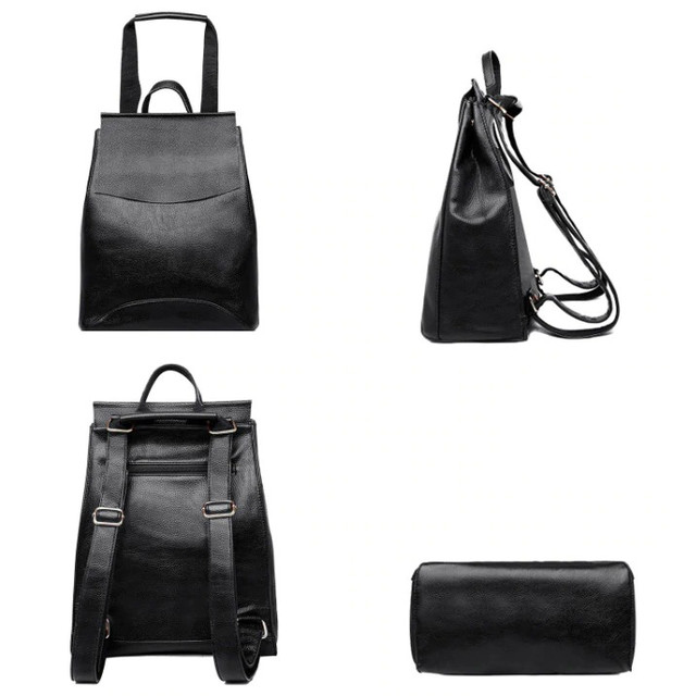 Рюкзак міський жіночий шкіряний з клапаном (чорний)