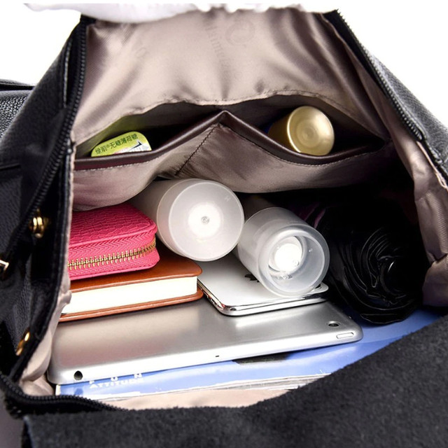 Стильний шкіряний жіночий рюкзак чорного кольору. Аксесуар місткий, всередині багато кишеньок, в тому числі на блискавці.