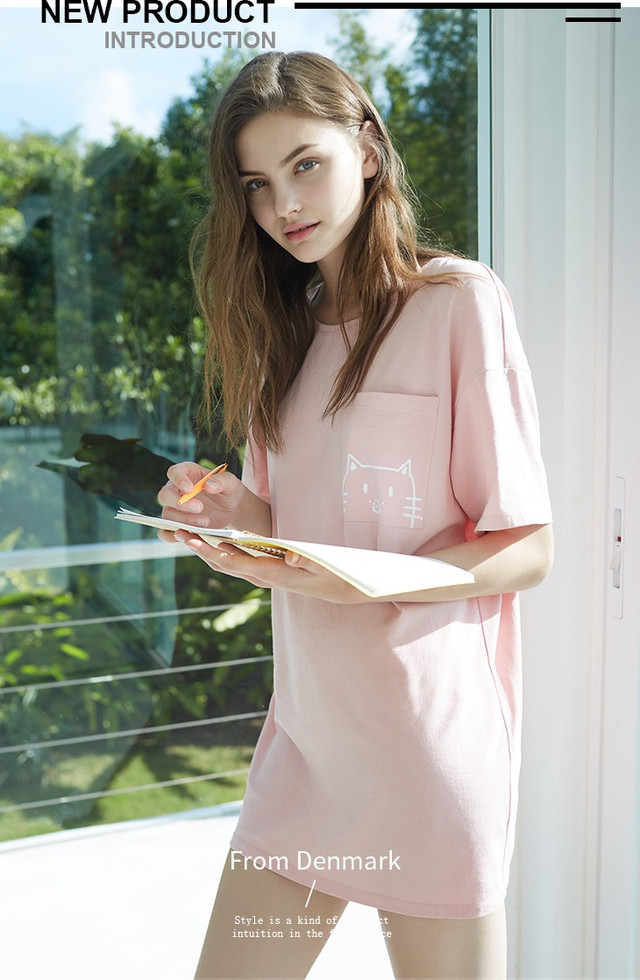 Туніка (сукня-футболка) жіноча літнє, домашня з котом, розмір M (рожева)