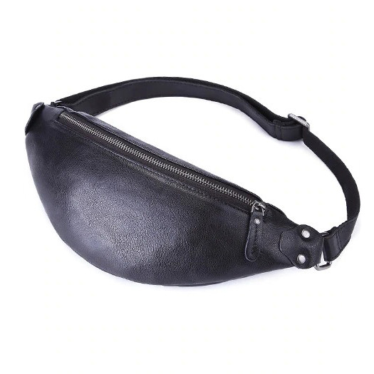Сумка шкіряна чоловіча поясна. Бананка з натуральної шкіри (чорна)