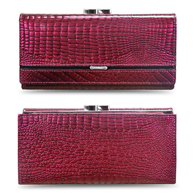 Гаманець жіночий шкіряний лаковий з тисненням під крокодила (бордовий)