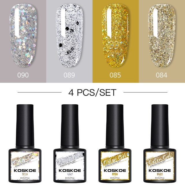 Набір гель лаків для манікюру з 4 кольорів. Пляшка пластикова, обсяг 8 мл. Лак густий, він дуже добре і рівно лягає в два шари, не розтікається. Через два тижні після нанесення на покритті не з'являється подряпин, тріщин, сколів.