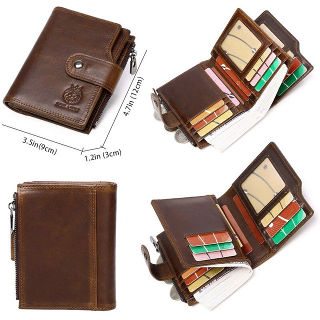 Стильний гаманець із натуральної шкіри з безліччю відділень для паперових грошей, карток, фотографій.