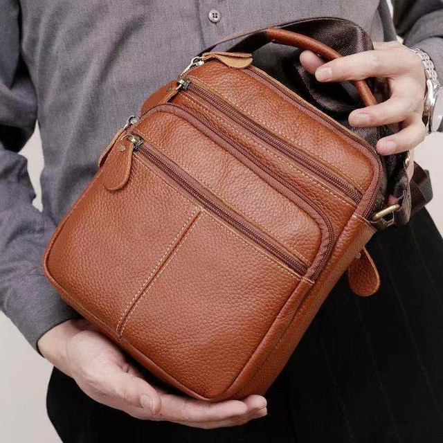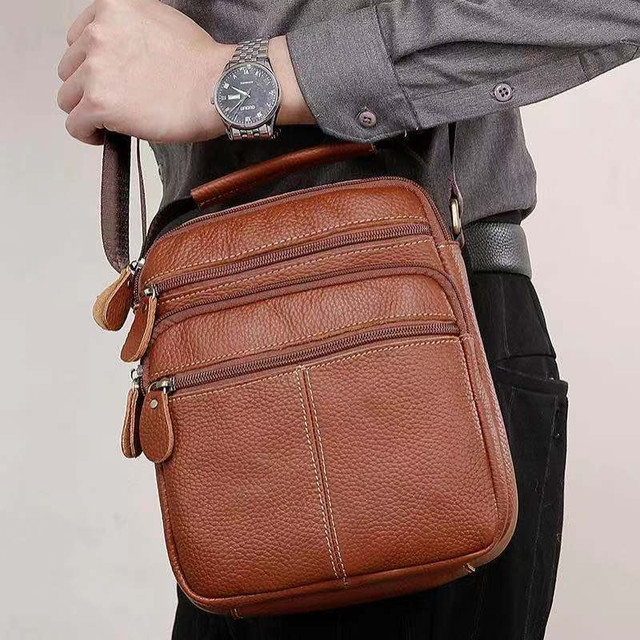 Чоловіча сумка через плече Натуральня шкіра Барсетка Чоловіча шкіряна сумка для документів планшет Коричнева