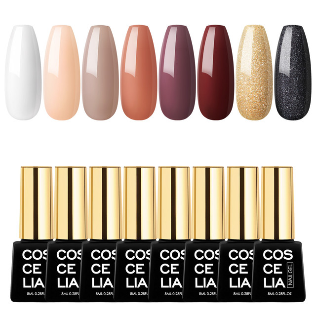 Набір гель-лаків базових кольорових різних для манікюру Шовлак для нігтів Гель-лаки 8 мл, комплект (8 шт.)