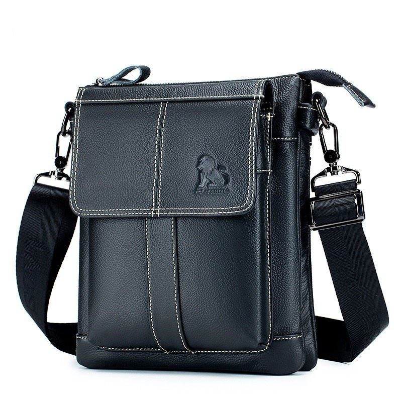 Чоловіча сумка через плече Натуральна шкіра Барсетка Чоловіча шкіряна сумка для документів планшет Чорна