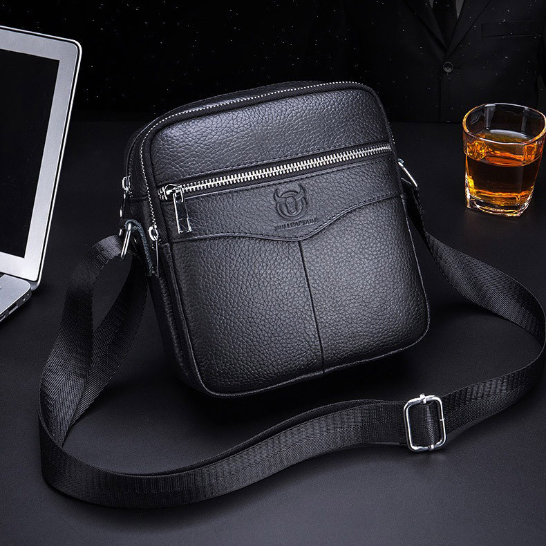 Чоловіча сумка через плече Натуральня шкіра Барсетка Чоловіча шкіряна сумка для документів планшет Чорний