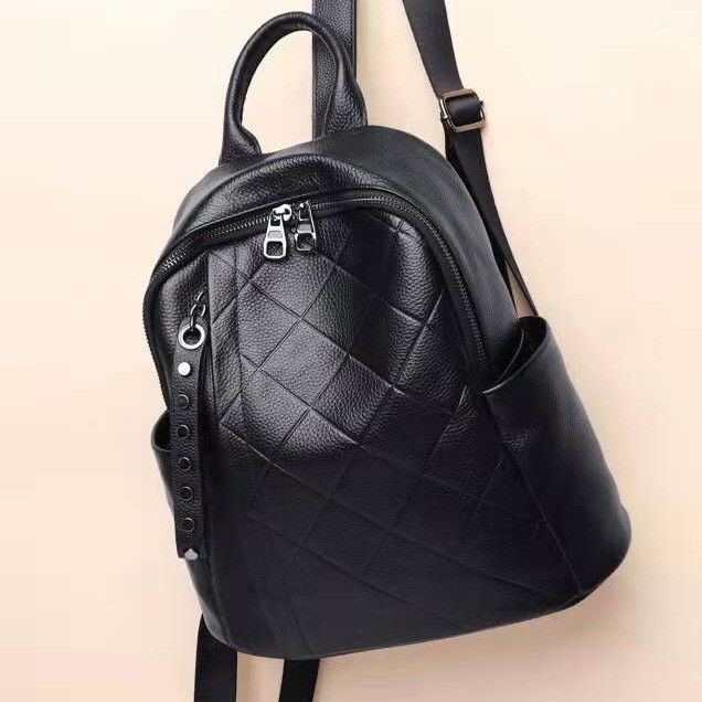 Стильний шкіряний жіночий рюкзак із безліччю кишень.