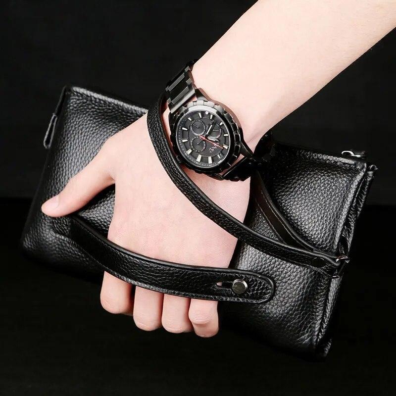 Чоловічий гаманець із натуральної шкіри. Чоловічий клатч. Шкіряний гаманець чоловічий портмоне зі шкіри Чорний