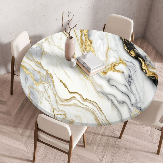 Скатертина кругла під мармур водовідштовхувальна на гумці. Скатертина на круглий стіл діаметр 80 см
