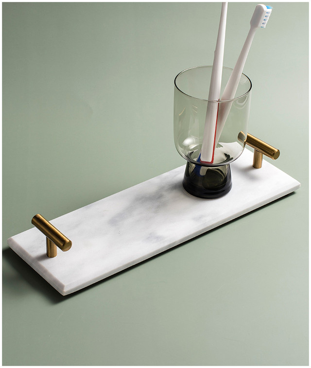 Мармурова таця органайзер для косметики у ванну. Підставка для парфумерії, прикрас 30*10 см Білий