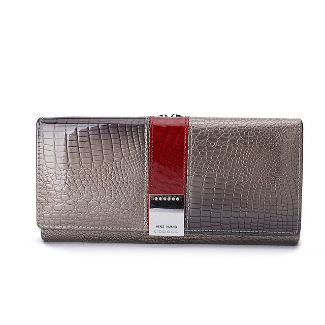 Гаманець жіночий шкіряний лаковий з тисненням під крокодила у подарунковій коробці Сріблястий