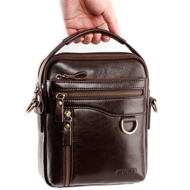 Чоловіча сумка через плече Натуральня шкіра Барсетка Чоловіча шкіряна сумка для документів планшет Коричнева