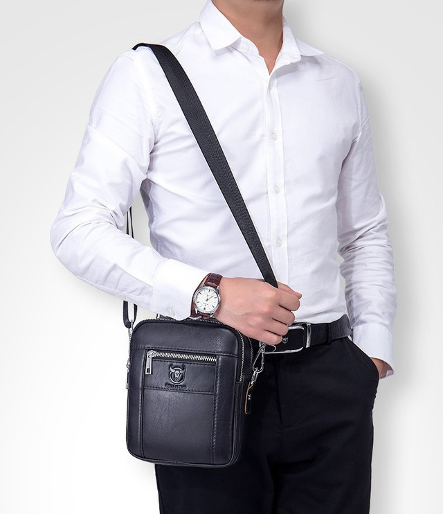 Чоловіча сумка через плече Натуральна шкіра Барсетка Чоловіча шкіряна сумка для документів планшет Чорний