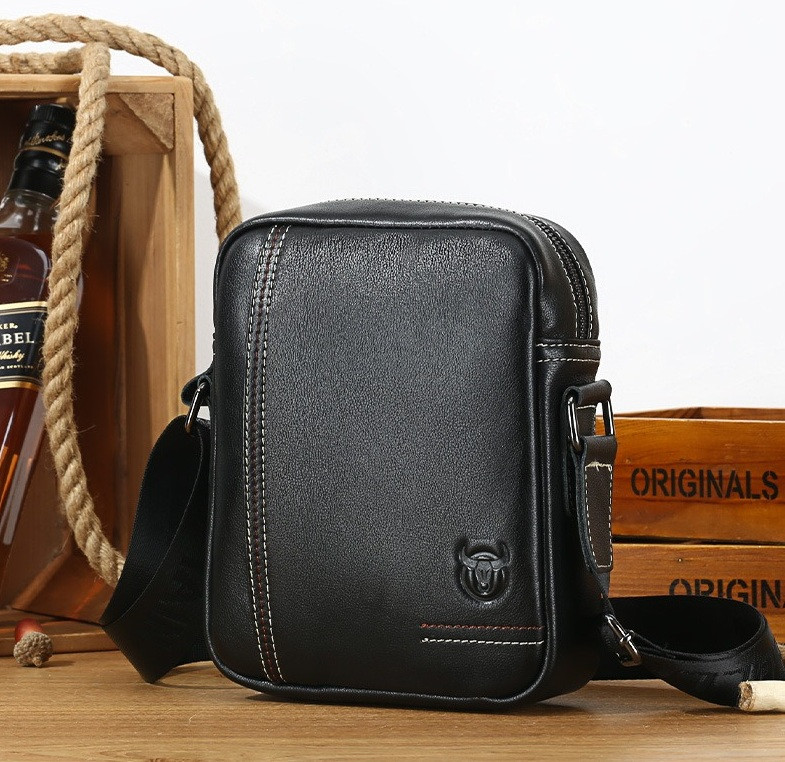 Чоловіча сумка через плече з натуральної шкіри Барсетка Чоловіча шкіряна сумка для документів планшет Чорний