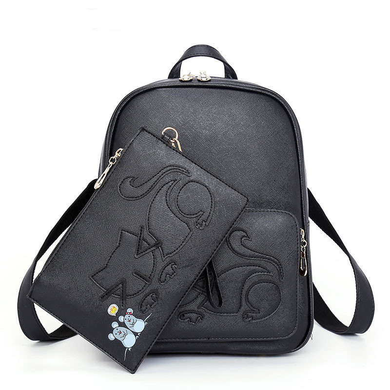 Рюкзак жіночий шкіряний Кіт з клатчем