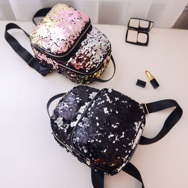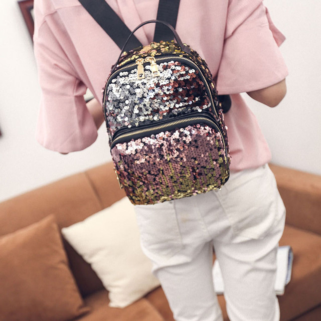 Стильный молодежный рюкзак небольшого размера, усыпанный пайетками.