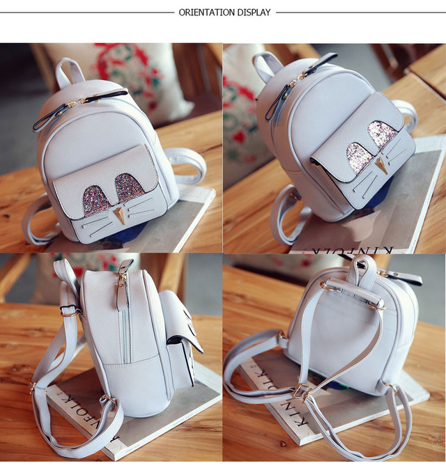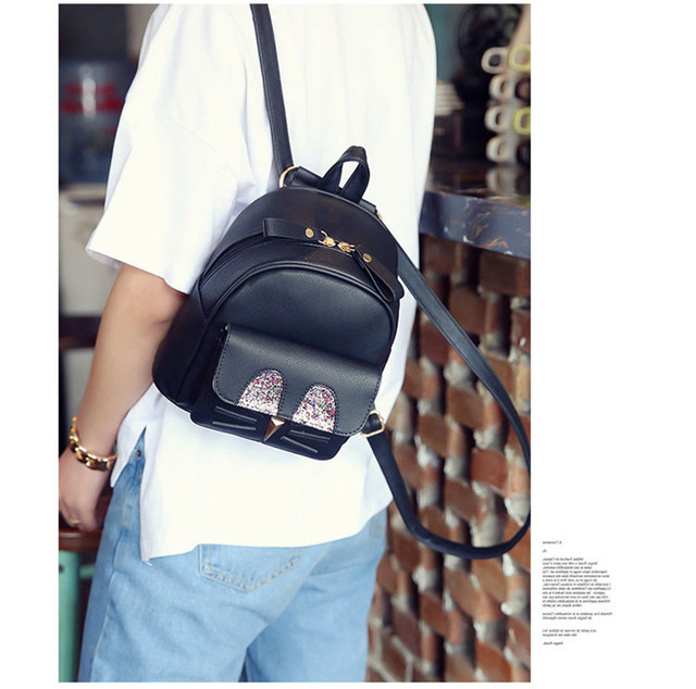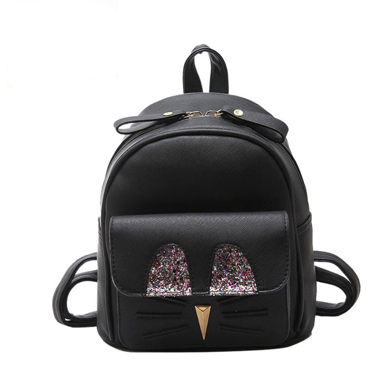 Рюкзак жіночий міні з блискітками Кіт (чорний)