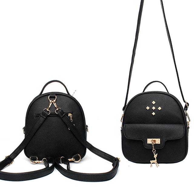 Рюкзак сумка (трансформер) жіночий шкіряний міській з оленем міні (чорний)