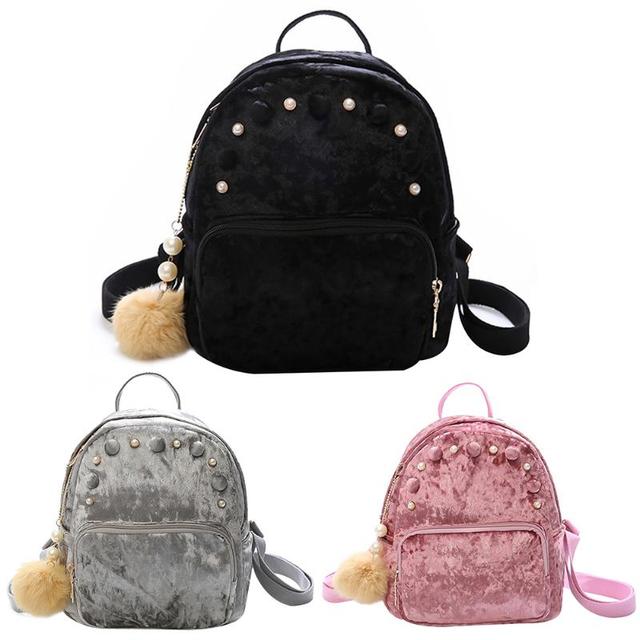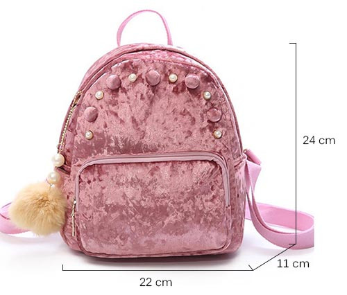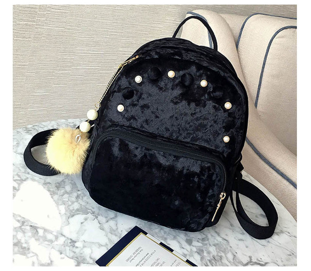 Стильний невеликий оксамитовий жіночий рюкзак. У комплекті йде підвіска помпон з перлинами.