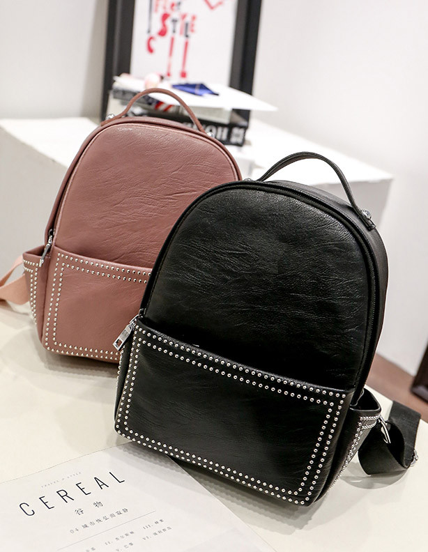 Модний рюкзак жіночий міський. Рюкзак для дівчинки з екошкіри з заклепками (рожевий)