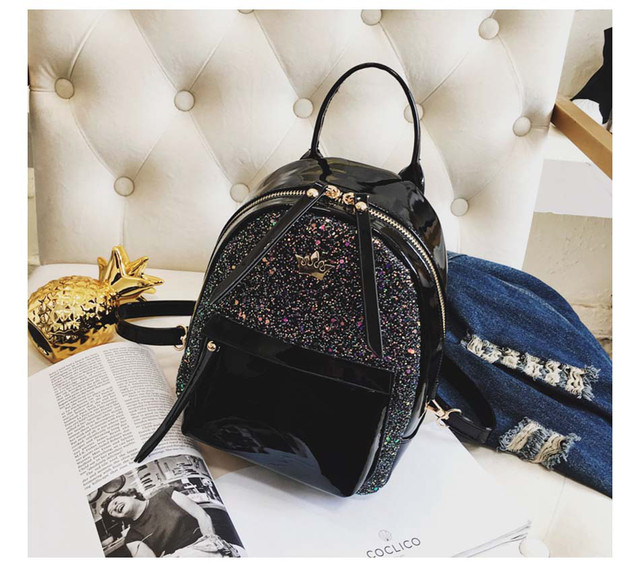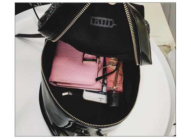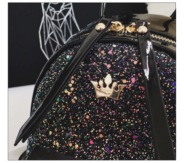 Рюкзак міський жіночий лаковий з короною (чорний)