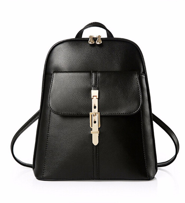 Рюкзак жіночий міський із пряжкою гладкий (чорний)