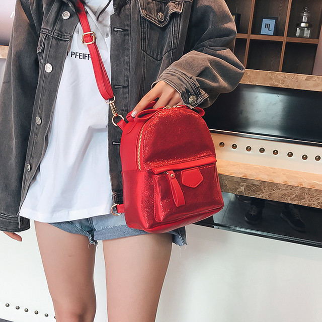 Рюкзак жіночий блискучий з екошкіри міні (червоний)