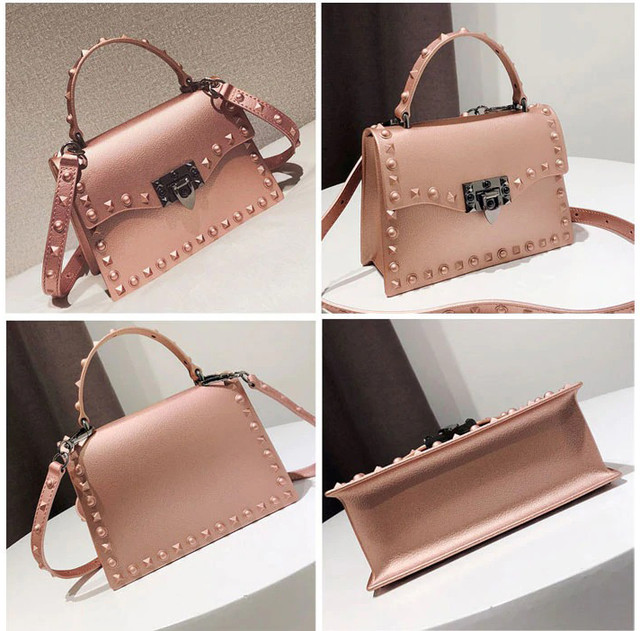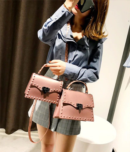 Сумка жіноча із заклепками, розмір S (золотаво-рожева)