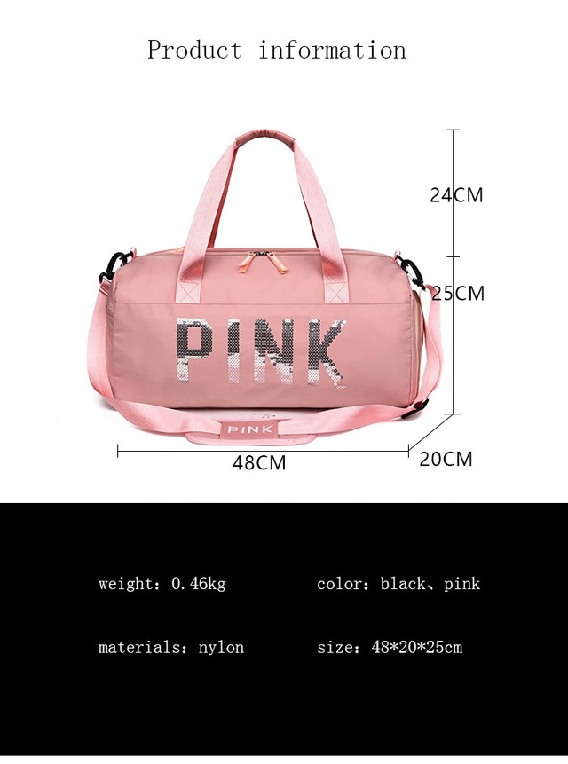 Сумка жіноча PINK в стилі Victoria's Secret дорожня спортивна для фітнесу з відділенням для взуття (рожева)